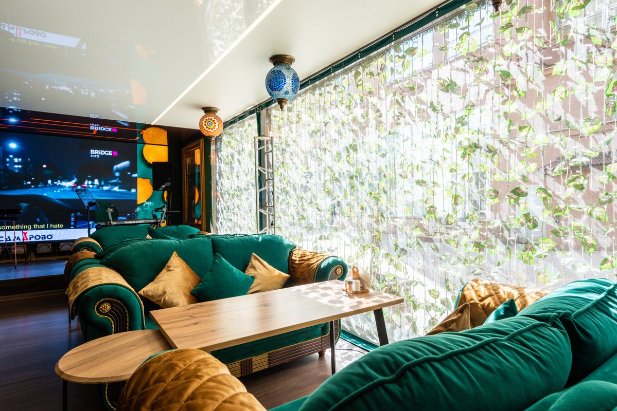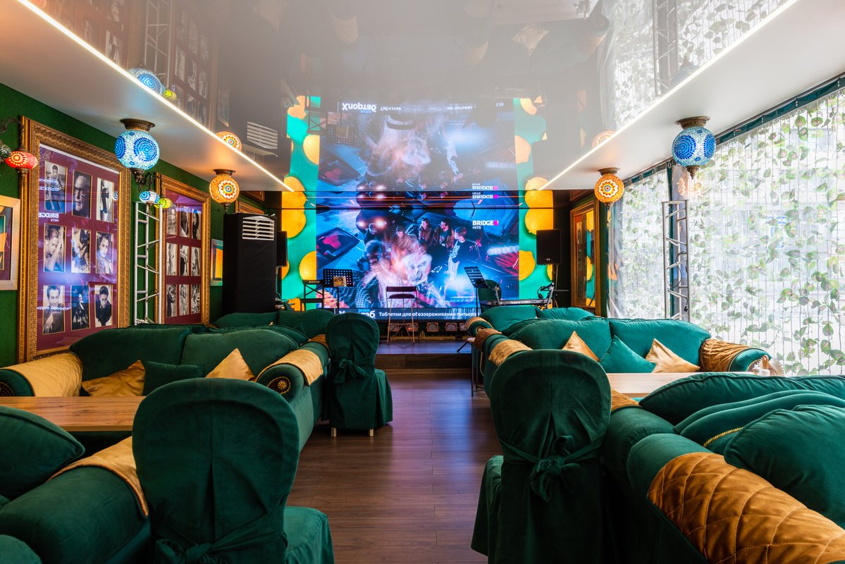 Также мы работаем как караоке-бар, где создано всё для приятного времяпрепровождения. Караоке - это возможность занять свой вечер пением популярных песен и ненадолго почувствовать себя звездой. С нас - богатый и разнообразный каталог и вместе с тем кухня и бар, а с вас требуется только определиться с треком и сообщить нашему сотруднику и получать приятные эмоции.